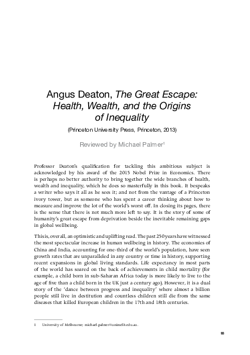 Pdf A Review Of Angus Deaton S The Great Escape Health Wealth